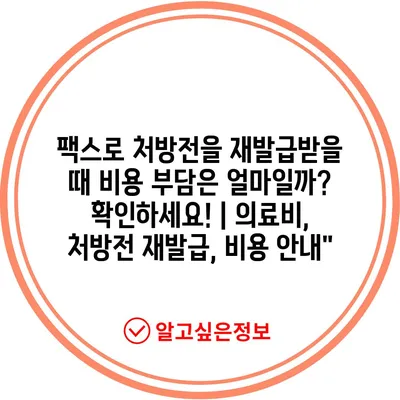 팩스로 처방전을 재발급받을 때 비용 부담은 얼마일까? 확인하세요! | 의료비, 처방전 재발급, 비용 안내”